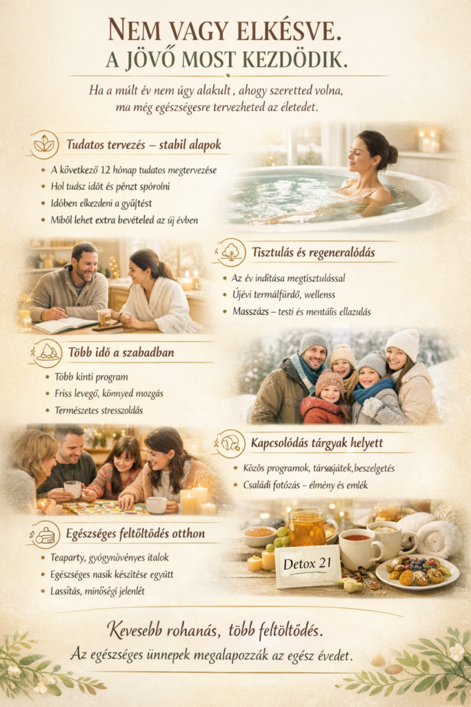 Ha már most, ebben a szent pillanatban megfogalmazódott benned, hogy 2026-ban szeretnéd másképp csinálni, vagy legalább szeretnél emberként kijönni úgy általánosságban az ünnepekből, akkor meleg szívvel ajánljuk a januári egészségprogramunkat.